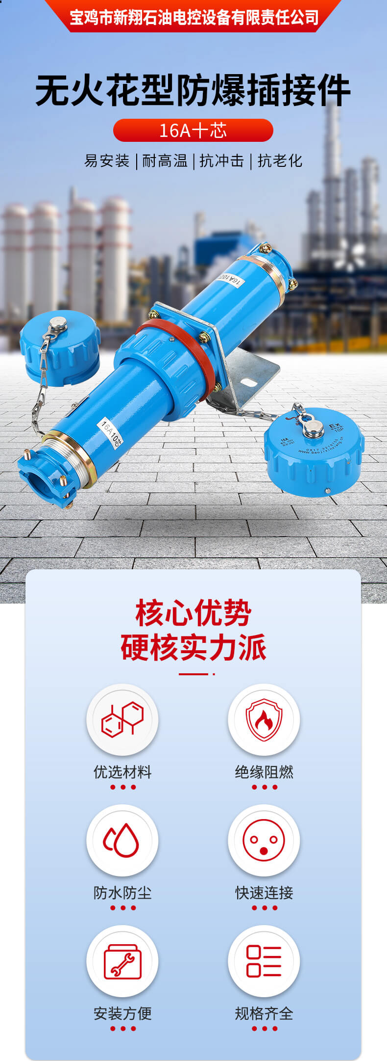 寶雞市新翔石油電控設(shè)備有限責任公司主要從事防爆產(chǎn)品的研發(fā)和制造,適用于石油、礦井、國防、電力等領(lǐng)域。公司設(shè)備先進、技術(shù)力量雄厚,集科研、生產(chǎn)于一體,有相當規(guī)模和水平的制造體系,并且嚴把質(zhì)量關(guān),己通過ISO9001質(zhì)量體系認證。